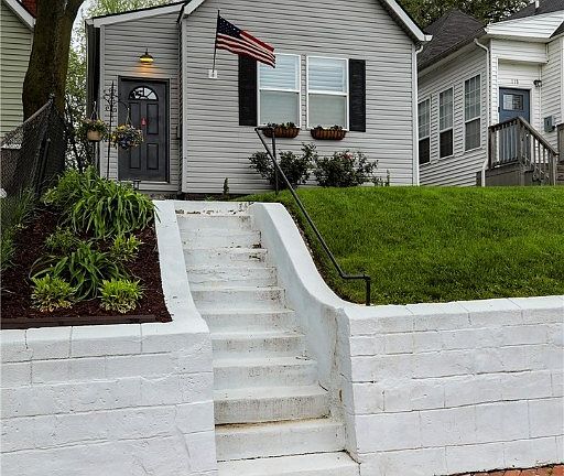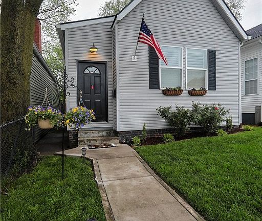 Location, location, location! Nestled in historic New Albany, this stunning home boasts a complete renovation, ensuring modern comfort and style. With updates including the roof, furnace, air conditioning, and water heater, all just four years old, peace of mind comes standard. The charming exterior welcomes you with flower window boxes, while inside, an open floor plan awaits, perfect for gatherings. The living room features an electric fireplace, while the eat-in kitchen dazzles with white cabinetry and a designer island breakfast bar in striking blue with butcher block countertop. A barn door conceals the laundry room with plenty of space for other supplies, adding convenience without sacrificing style. The primary bedroom offers ample space and direct access to a renovated bathroom, complete with a tub-shower combo and decorative shelves. A second bedroom shares this bathroom, while a dedicated ensuite bathroom serves the third bedroom, also remodeled with a tub-shower combination. Outside, a grilling patio with fire pit awaits in the rear lawn, along with off-street parking. Additional features include designer rolling blinds, attic storage, newer appliances including a front load washer and dryer, and a ring camera and doorbell for added security. With a corner park just steps away and close proximity to the Greenway, waterfront park, restaurants, shops, and boutiques, this home offers the perfect blend of comfort, convenience, and charm. Don't miss this opportunity!