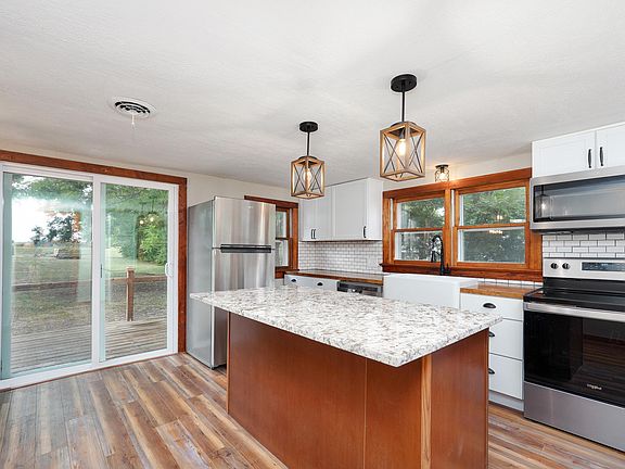 This beauty is an absolute must see. Wonderful curb appeal. So much charm and character. Shows fantastic. Four bedrooms two baths almost everything has been updated and re-done it is magnificent. Brand new carpet. Laminate flooring. Fresh paint. Very inviting front porch with a magnificent door. Kitchen is fantastic, island with granite countertop. Butcher block counters around a farmhouse sink. Farmhouse light fixtures as well. Wonderful deck off the back for entertaining. Around 1/2 an acre. also a fire pit and also features a nice shed/garage. And then another workshop with concrete floors electric and insulated. Fantastic ALL NEW appliances including the washer and dryer !!! also the basement features a brand new hot water heater and a brand new sump pump better take a look at this one shows fantastic.