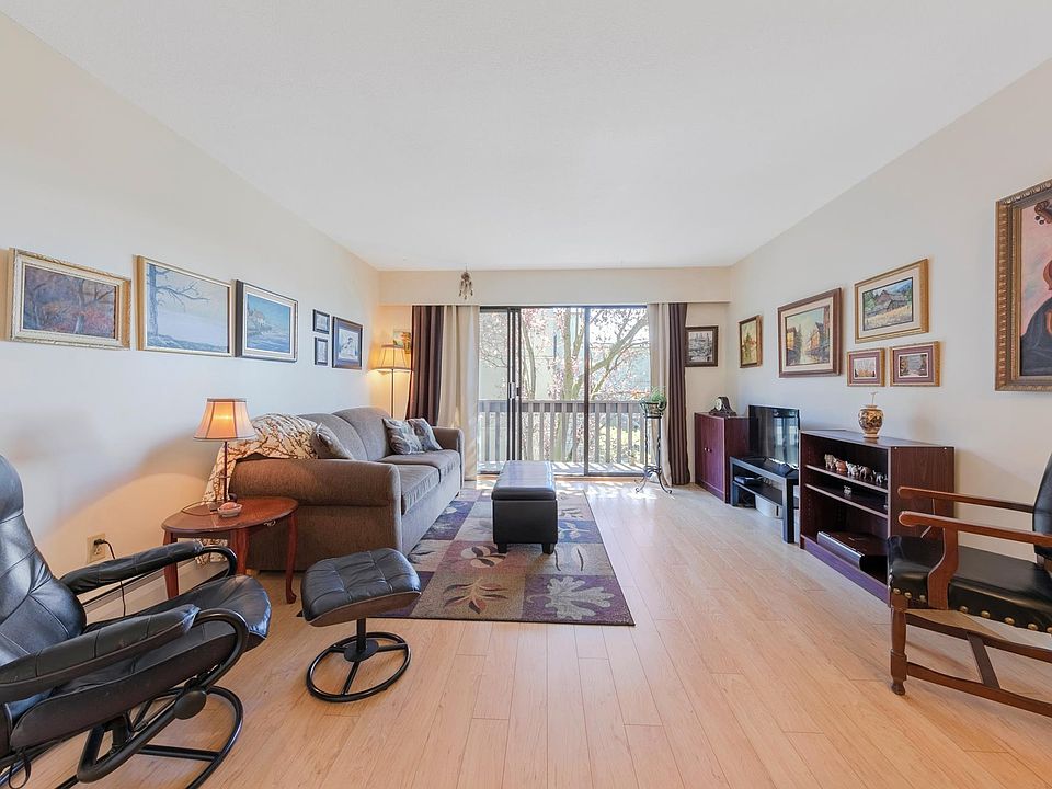 Lower Lonsdale lifestyle awaits in this bright 1 bed 1 bath condo just blocks to everything you need! The traditional layout is welcoming with an updated kitchen, entry hallway closet & bathroom w/new floors & vanity. The open concept living & dining are spacious with an abundance of natural light. The bedroom offers more big closet & windows. Enjoy lounging on the large east-facing sunny patio with peek-a-boo ocean views. 1 parking, 1 storage & shared laundry located on the main floor. With recent elevator & plumbing replacements, this quiet, well-maintained building is located on a calm street just steps from Lonsdale Quay, Shipbuilder's Square, the Art Gallery, the Seabus, shopping, dining, breweries and parks. You truly can't beat this location! 14+ age rest & dog/cat friendly!