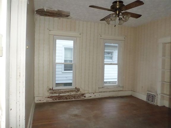Large turn of the century home in Mishawaka. This home has a covered front porch and a 1 car detached garage. A lot of character with wood flooring original woodwork and pocket door. Large rooms and high ceilings. Main level features a large living room formal dining room kitchen and laundry room/half bath combo. 3 bedrooms and 1 full bath on the upper level. Full basement with a rec room. This home has potential.