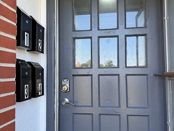 Front door with keypad lock for enhanced resident safety and convenience
