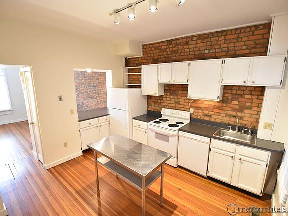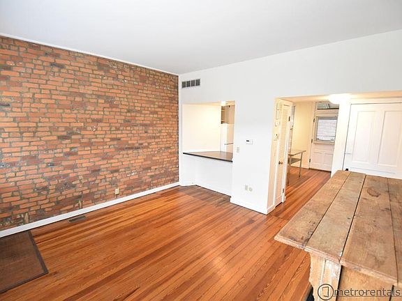 This two bedroom, two story townhouse is located in the heart of German Village, a historic district in Columbus Ohio. It is a classic Village apartment, with exposed brick walls, a decorative fireplace, original refinished old pine floors and a private patio for grilling or lounging. A skylight and large windows make this a sunny, cheerful place to live. The spacious kitchen with stainless steel island is great for cooking and entertaining. A pass through from kitchen to living room makes entertaining easy. There is a full, dry basement for storage. A washer and dryer are included, as are a security system, central air conditioning and storm windows for energy efficiency. The Frankfort Street location is within easy access of Schiller Park, local grocery stores and popular German Village restaurants, coffee shops and stores. Owner pays trash and sewer, tenant pays electricity, gas and water. We do have a general no pets policy, with some flexibility for house cats.