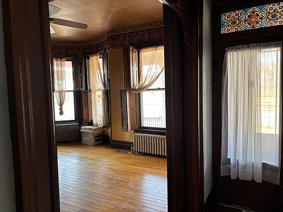 Live at Rose Manor in Sunbury! This first-story apartment is perfect for people who prefer light-filled, elegant, and spacious living spaces. Located in a historic Victorian home, this apartment is a blend of original details and modern amenities. The washer, dryer, and water heater are brand new. The bathroom was fully renovated within the last year. From the front of the property, you enter a vestibule then your front door. The rooms are "in a row" with access from the hallway and adjoining rooms. The front room (yellow room in the pictures) could be a living room or bedroom. It includes a fireplace, turret (round sitting nook), and a wall of West-facing windows looking out at the large sitting porch. The second room (with patterned wallpaper) can be closed off. This could be a bedroom or office. The third room (with a map on the ceiling) is cozy and would be perfect for a walk-in closet, a child's bedroom, or an office space. The fourth room (cream walls) connects to the kitchen and would make a nice dining room. The wood built-ins in this room are original to the house. The large kitchen includes a stove, range, washer/dryer, and double sink with garbage disposal. The bathroom off of this room was fully renovated this year with a standing shower, toilet, and sink. The back porch is for your exclusive use and looks out at the parking lot. You have two reserved off-street spots for your use. One year lease term or longer required. No smoking inside. Owner pays water, trash, landscaping, and snow removal. Cat allowed with pet deposit.