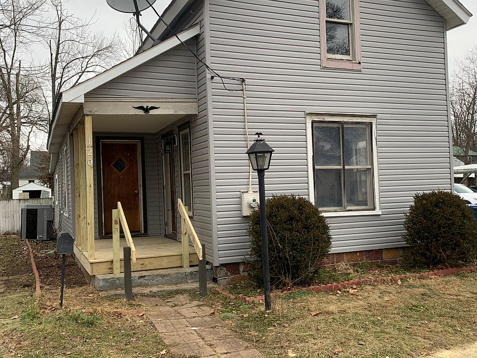 This house is for sale on land contract in Auburn, Indiana and ready for move in! This home offers 1,204 square feet of living. It is a two bedroom home with one bedroom upstairs and one bedroom upstairs with an extra closet and a landing. There is a mudroom and a laundry room off the kitchen. The water heater and furnace are in working order. It has all new siding, part of a new roof, and other updates. It has a nice large backyard. There is a shed in the back for storage and a nice concrete patio beside the house ready for a new garage or outside entertainment. There is additional stone parking in the back of the property. The property has been going through a lot of work, but still needs some work.