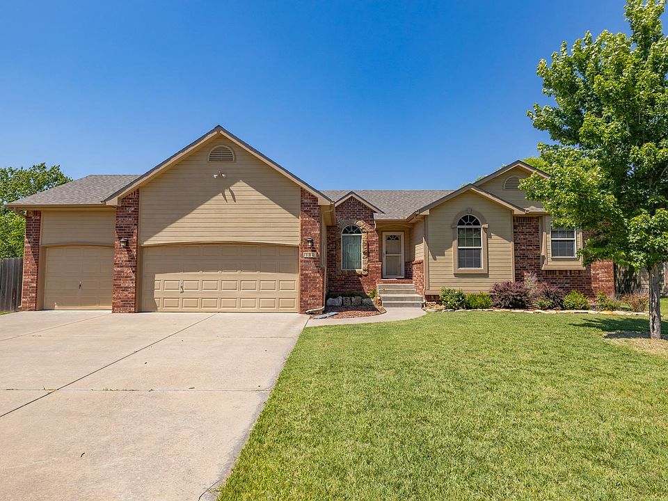 Beautiful 3-bedroom, 2-bathroom home with oversized 3 garage in Kechi’s Northwoods neighborhood. Conveniently near Koch Industries, K96 and I-235 and minutes from Wichita! Northwoods amenities include 2 stocked fishing lakes, neighborhood park and large, mature trees. The large, fenced backyard offers unobstructed views of trees from the deck and the occasional deer sighting. The interior of the home has all-new paint and carpet throughout. When you enter the home, the open concept living room with high vaulted ceilings opens to an eat in kitchen overlooking the back yard. A pass-through fireplace ties the rooms together. The kitchen features newer appliances that transfer, built in desk off fireplace and kitchen island with pot rack and updated lighting fixtures. Opposite the living room, you will find 3 bedrooms and 2 bathrooms. The primary bedroom suite has an ensuite with dual sinks, jetted tub and shower. 2 additional bedrooms and a full bath in the hall complete the main floor living area. The 3-car garage is oversized and leads into the laundry room off the kitchen. Downstairs, you have an unfinished basement area with view-out windows that is provisioned to add another bathroom and 4th bedroom as well as additional space for bonus rooms. If you want to have an oasis outside big city limits with a small-town feel, enjoy a unique and eclectic arts and business district with Karg Art Glass, a live theatre playhouse, Valley Greenhouse and annual city events, and invest in a growing community outside Wichita city limits, this home is a great find. Schedule your appointment to view today!