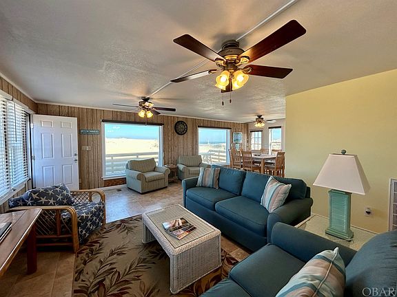 Enjoy everything quaint South Nags Head has to offer in this oceanfront cottage. Located behind a protective dune, this property does not lack views. The first floor includes a spacious living room, dining area, kitchen, two bedrooms, and a hall bath. Upstairs you will find two additional bedrooms, one ensuite, and a private upper deck with panoramic views. This home does not lack outdoor living space with generous decking on the first floor perfect for sharing a meal, just hanging out, or enjoy a refreshing outdoor shower. The home has a great rental history projected to do at or above $80,000 in 2024. Located adjacent to a lifeguard stand in the summer months.