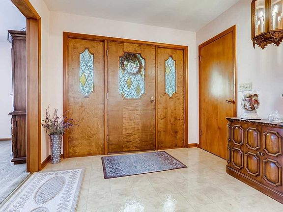 This sprawling mid-century modern stone ranch on a large basement situated on 3.147 rolling acres offers a 68 X 40 pole barn with horse stalls and its own electric service. This spacious sun-drenched home offers an open floor plan with over 3100 square feet of living space. The home has many unique features like split-limestone veneer; custom cabinetry including bookcases, drawers, entertainment center, a counter in the home office, and built in speakers; accordion doors for privacy; a huge walk-in cedar closet; an intercom system; pecan tongue and groove wall boards; a whole house vacuum system; and so much more. The main level of the home offers a living room, family room with fireplace, eat-in kitchen with large dining area, a master suite with double walk-in closet, three additional bedrooms, a laundry room with plenty of space for a sewing or hobby area, a second full bath and a half bath. The unfinished basement has had a water-proofing system installed, offers accordion doors to separate the spaces, a storage/utility room, lovely brick wood-burning fireplace and billiard table. Sump pumps and wall heaters/coolers are in basement for climate comfort/control. This spectacular home is sure to delight!