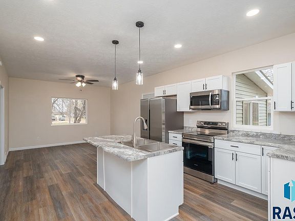 Here's your chance to own your own 2 BR/ 1 BA ranch home that has been completely updated & is situated on a spacious corner lot! Brand New items include: front heated 3 season porch w/ closet, new windows throughout, vinyl siding, gutters, 92% high efficient furnace, central air, electric panel, insulation in walls, sheetrock, new paint inside & out, new trim & doors, & light fixtures. This home features an open living room & awesome brand new kitchen, walk-in pantry, dining room, brand new full bathroom w/ quartz countertop & main floor laundry. The kitchen is gorgeous w/ white cabinets, new countertops, center island, new SS appliances, deep SS sink & faucet. Brand new LVP & carpet. 9' Ceilings. Main floor laundry area. The rear garage has brand new windows, shingles, new paint & a brand new double door & opener. Brand new rear deck w/ steps & landscaping. Just minutes from Sioux Falls. Everything you need on one level! Take a look today!!