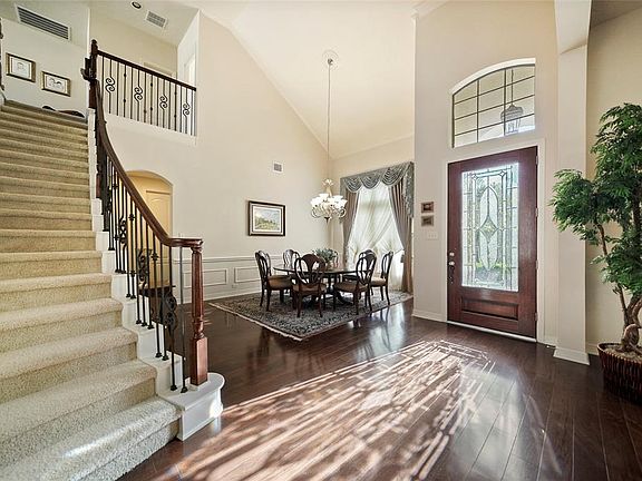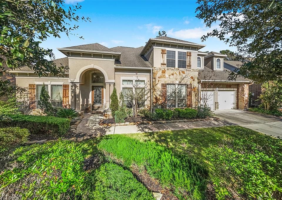 Stunning Trendmaker home right in front of Tupelo park which includes walking trails, pond, covered picnic area and lots of green park space. This 5 bedroom home features 2 bedrooms down, 4 baths, an open floor plan with high ceilings, hardwood floors throughout downstairs and tile in wet areas only. Island kitchen has stainless appliances, walk in pantry, plenty of cabinets and under cabinet lighting. Wrought iron staircase leads to large game room and 3 bedrooms upstairs. Spacious 3 car tandem garage. Covered back patio and yard has a full sprinkler system. Within walking distance to the Rob Fleming Aquatic center, which has lap lanes, lazy river, splash pad. Nearby Creekside Park Village Green offers shopping and dining. No flooding during Harvey. Barely lived in, original homeowner used this as a second home.