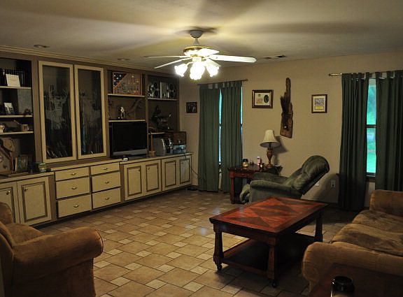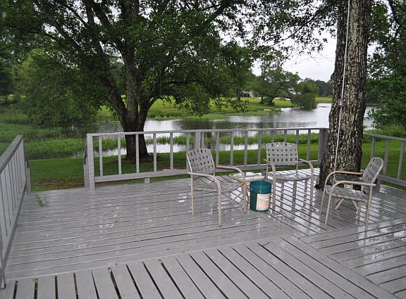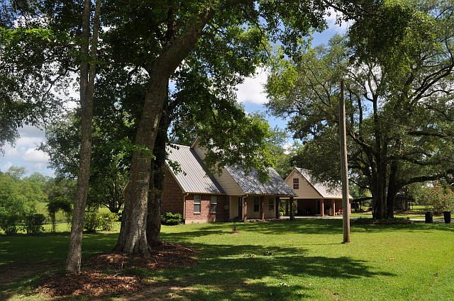 Family Home nestled on 2 AC w/ pond & shaded by Live Oaks. This home offers 3 lg BR & 2.5 BA. Ceramic tile through home in neutral color, custom wall entertainment/ book case in living room, open kitchen w/plenty of counter space & open dining area w/view of pond & deck. Detached garage has utility shed w/half bath & a 28x16 bonus room above.It also has a small 100 yr. home that's functional.