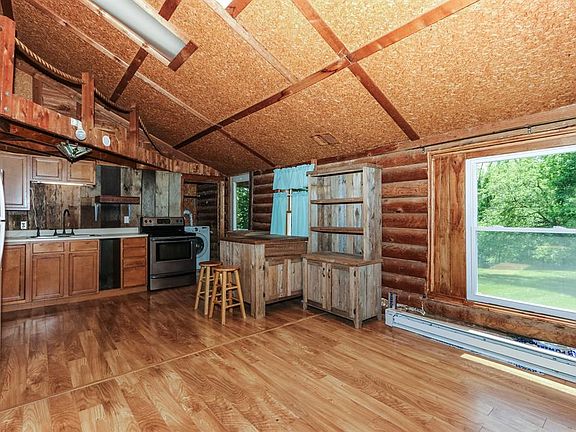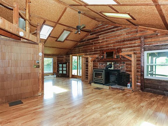 Own this adorable log home that sits on 1.75 level private acres with city water! 3 bedrooms plus a loft*New wood laminate flooring throughout*new covered side deck and covered back deck*upgraded cabinets*new window in living rm & dining rm*new bathroom shower*cedar closets in all bedrooms*painted/sealed home*2 vehicle carport*1 year home warranty offered.
