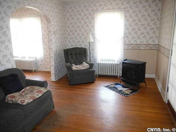 This 3bdrm and 1ba Bungalow has a bonus room and hardwood floors throughout the main floor. Kitchen with eat-in dining. Formal dining. Cozy living room with natural gas burning wood style stove. Attic is partially finished with 3bdrm and has space for a bonus room or possible in-law suite. Move in and Make It Your Own!!!
