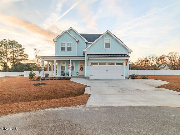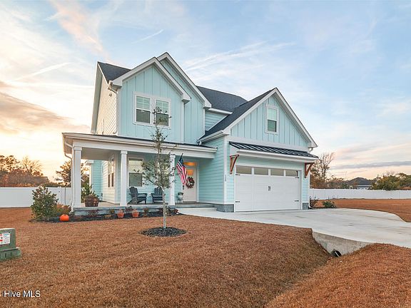Welcome to your dream home nestled in a desirable gated community of Bridge View just minutes from the stunning shores of Emerald Isle! This exquisite 2023-built residence is situated on a peaceful cul-de-sac, offering you both privacy and tranquility. Enjoy the convenience of community boat storage, a boat launch, and a dock, perfect for water enthusiasts. You will find a spacious open living area adorned with a natural gas stove and a cozy fireplace, seamlessly leading to a formal dining room ideal for hosting gatherings. The chef's kitchen boasts beautiful granite countertops, while a custom wood window shutter adds a touch of elegance throughout the home. With four bedrooms and 2.5 bathrooms, there's ample space for family and guests. Retreat to the master suite, featuring 2 custom closets and a private balcony deck that provides breathtaking views of the sound. The newly installed vinyl privacy fence in the backyard offers a secluded oasis, with plenty of room for potential pool installation thanks to the lot size and septic placement. The large two-car garage is equipped with built-in shelves for added convenience. Plus, the included washer and dryer make moving in a breeze!
