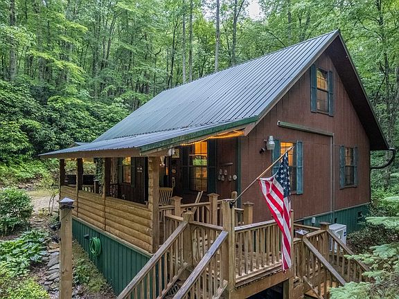 Rustic cabin in the woods! This home is being sold completely furnished and turnkey! Offering 2 bedrooms,2 bathrooms and a bonus sleeping area. High vaulted ceilings and a nice open concept floor plan. Plenty of room on the covered front and back porches. Includes a huge two vehicle attached carport. Enjoy exploring the property with native foliage, trickling streams and nearby waterfalls. Primary bedroom offers an ensuite bathroom which is located on the main level. Convenient first floor laundry. The 2nd bedroom is the open loft area and the bonus sleeping area is on the upper level too. If you've been searching for an affordable, rustic style, low maintenance, turnkey cabin in the mountains, look no further, you've found it!