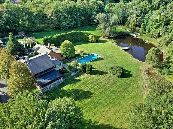 Have you ever dreamed about owning your private majestic country landscape? Enjoy the beautiful terrain of this property which has two ponds -- one pond is inhabited by waterfowl; the second one has an active population of koi, sunfish, crayfish, egrets & more. Offering indoor sophistication, the home is functionally designed for today's lifestyle with an open floor plan featuring a 3-story great room with a massive stone fireplace which frames a stained glass window. Chef's country kitchen features center island, granite tops, walk-in pantry, & enviable appliances including 6-burner Viking stove, wine chiller and more. Main level also includes family room, playroom, office and a potential 3-room (plus loft) in-law area which is smartly separated from the main home with it's own access. Re-claimed chestnut trim accents the main level along with a non-fading slate floor imported from Vermont which supplies radiant heat. Second level has master bedroom, with numerous built-ins (no furniture required!), & updated bath with large shower. Three additional bedrooms (two with en-suite baths) and a loft area complete the upper level. Step outside to your stone patio and Gunite salt water heated pool which overlooks panoramic views of your property and offers a harmonious environment. Exterior of the home is Cypress and slate requiring minimal maintenance. Home is heated by efficient radiant heat with 12 zones. Claim your Castle---this is your chance!