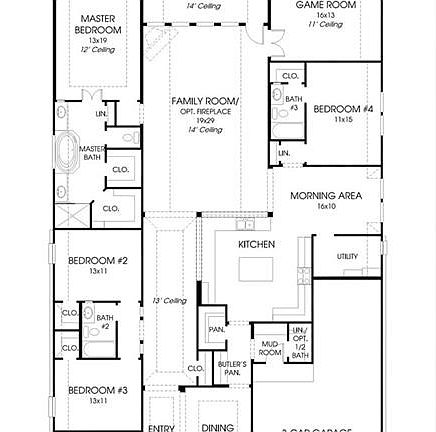 Formal dining room and library with French doors frame entry. Coffered entry leads to open family room with wall of windows. Island kitchen offers Butler's pantry and large walk-in pantry. Game room with French doors just off family room. Guest suite with private bath just off morning area. Spacious master suite includes bedroom with wall of windows. Dual vanities, garden tub, separate glass-enclosed shower and two walk-in closets in master bath. High ceilings and large windows add to this one-story home.Guest Accommodations: Yes Restrictions: Yes Sprinkler Sys:Yes