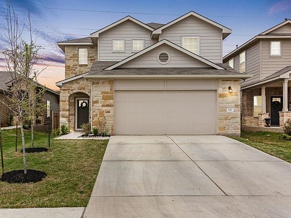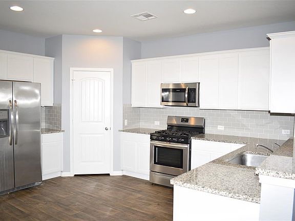 Beautiful spacious home in popular Larkspur Community with its own Elementary School. 4 Bedrooms with Master Down, perfect for growing families. Home featuring a nice Open Floor Plan with island kitchen, quartz countertops, stainless steel appliances, Refrigerator, Washer & Dryer are included. Huge pantry, spacious living/dining area, covered back patio, sprinkler system, great community amenities and close to 183A, shopping, dining and HEB! Pet friendly!