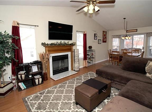 As you enter the foyer of this stylishly updated and decorated house, you will step into the vaulted great room with a wood burning fireplace and an open staircase to the lower level. The open floor plan leads you to the breakfast room with an expansive bay window/door to a spacious deck. The adjacent kitchen features a tile backsplash and a center island. Down the hall youll pass the 2nd & 3rd bedrooms to reach the master bedroom suite with a full master bath and walk-in closet.The finished lower level is incredible with an impressive bar complete with a bar refrigerator, a workout room, possible extra bedroom, a full bathroom and of course the inviting family room. There is a walkout to a large patio area that overlooks the vinyl fenced backyard and wooded common ground plus there is a cozy fire pit area.