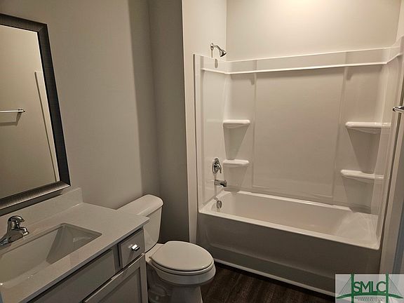 Savannah's most trusted local builder is proud to offer our Dayton plan. This 5 BR/3 BA home is open with tons of natural light and gorgeous upgrades! On the main floor living spaces and in laundry room and bathrooms you'll find wood-look vinyl flooring, while the kitchen boasts 42" tall cabs with plenty of storage space and an amazing pantry and center kitchen island. All kitchen appliances are included in stainless steel - even the fridge! A guest bedroom next to a full bathroom is on the first floor, as well as a study/office and ample living space. Upstairs you'll find four bedrooms, two full bathrooms, a loft, and plenty of storage/closet space. Primary bathroom features separate shower & garden tub as well as two sinks in a quartz top vanity. Full sod & sprinkler in yard. Pictures, features, and selections shown are for illustration purposes and may vary from the home built. All builder incentives applied
