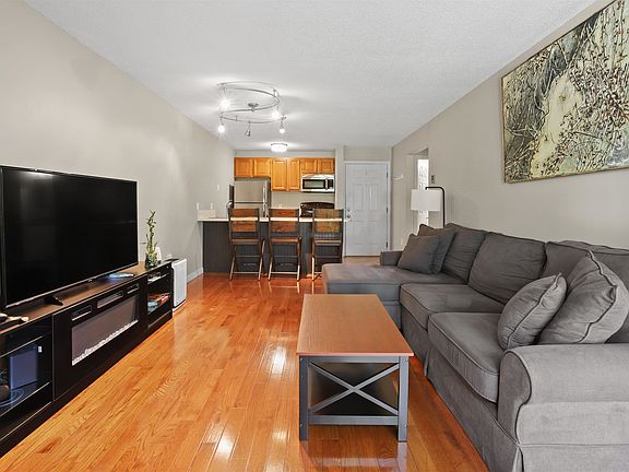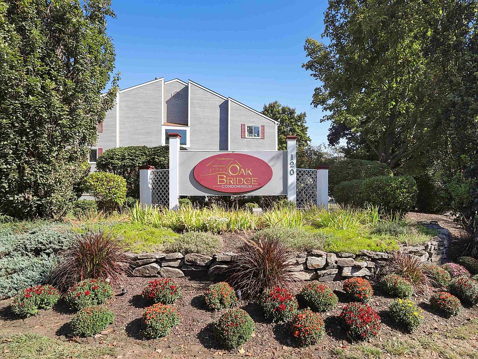 Welcome to Oak Bridge ~ this open-concept condo features a spacious open-concept layout. Enjoy your morning coffee on the balcony which spans the family room and bedroom room, overlooking serene wooded views. The updated kitchen is appointed with Corian countertops, the bedroom has 2 closets for extra storage and the bathroom conveniently includes an in-unit washer and dryer. Enjoy the community's workout facilities and indoor pool. Landscaping, snow removal, trash and water are all covered by the association. The unit is in Building 1.