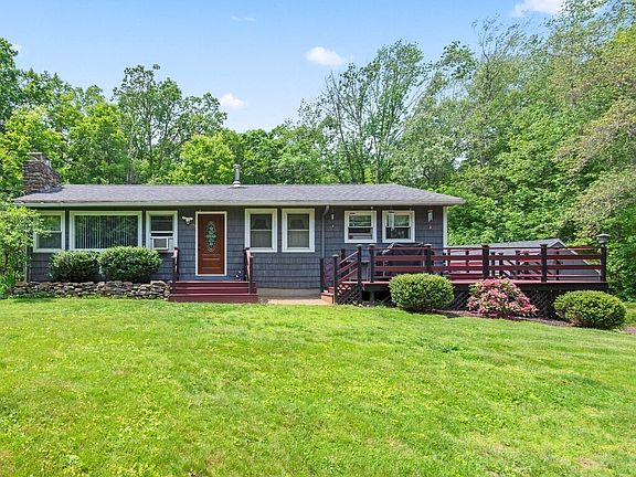 HUGE PRICE REDUCTION: Beautifully updated 6 room 3 bed, 1.5 bath Ranch on almost an acre of land. The main floor includes Kitchen, Dining room with wood stove, fireplaced living room, 3 beds and full bath! Lower lever has about 500 SF of additional living space including 1/2 bath, fireplaced family room with a built in bar, lots of storage space and laundry room.The interior has been recently painted and the large deck has been freshly stained The.carport is large enough for 2 cars , new Velocity indirect hot water storage tank and Weil McClain gas boiler. Newly paved and expanded driveway less than 2 years old. Easy access to Route 20 , 84 and the Mass Pike. The Grand Truck Trail is located a short distance down the street from this home and is great for hiking , biking , horseback riding and birding. Their website says they have identified 142 species of birds in this area! Title V has passed.