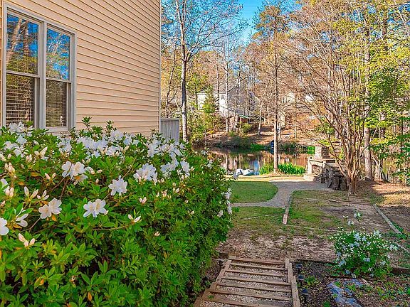 Beautiful in town paradise on pond with outside entertainment area with stone pavers and Large custom fireplace. This Charleston style home boasts new shingles 2013, new TRANE HVAC in 2017, cathedral ceilings, 9' smooth ceilings downstairs, Huge family room over the garage overlooking the pond. Master has vaulted ceilings and private side porch. Large two car garage and storage area on main level and NO HOA!