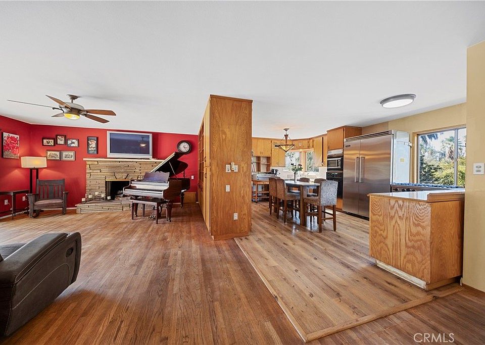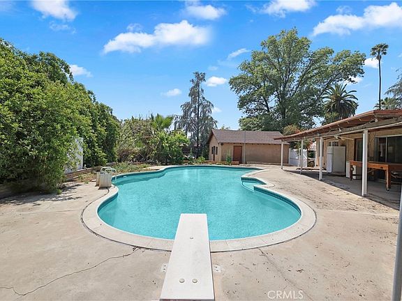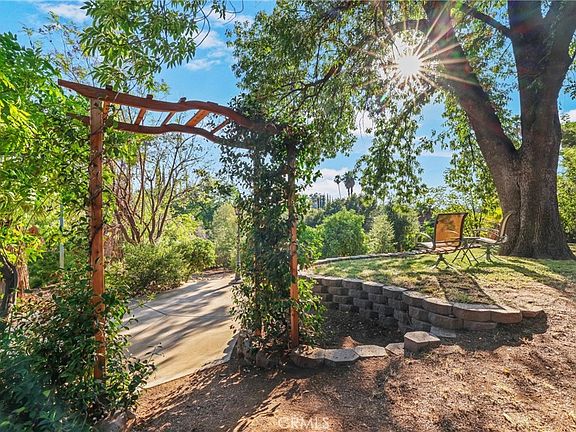 Feels like Prospect Park, escape to your own private sanctuary, a sprawling single-story estate nestled on 1.4 acres tucked away in a hidden pocket of South Redlands. Access is, down a private driveway off another private drive, with its own circular driveway, well off the street. This property offers an extraordinary level of seclusion and tranquility rarely found, feeling like your very own private park. This is a 4-bedroom, 3-bathroom residence of 2,131 sq ft of comfortable living space. Inside, enjoy modern comforts including rich wood floors and a recently installed high-efficiency HVAC system (heat pump & gas furnace) paired with an solar panel system for significant energy savings, and a house generator for those times when needed for the refrigerator, lights, HVAC, and many outlets throughout. The heart of the home features a chef's delight kitchen equipped with high end Viking appliances, including a professional-grade stove/cooktop, refrigerator, and the warming drawer with so much cabinetry and storage. The spacious living areas flow seamlessly, inviting relaxation and entertaining. Step outside to experience a true Southern California oasis. The expansive grounds feature a variety of fruit trees, such as lemon, peach, navel, pomegranate, plum and grapefruit, creating a mini-orchard. Unwind around the firepit by the serene backyard pond, or enjoy endless summer days by the large in-ground pool. Multiple outdoor living spaces enhance the lifestyle, from the charming front porch perfect for morning coffee to a unique balcony next to one of the two garages, providing a fantastic spot to unwind and enjoy the sunset views over your private retreat. Expansive parking is provided by the circular drive and dual garages. Located a block from Prospect Park in prestigious South Redlands, enjoy peaceful seclusion while remaining close to top-rated schools (Kimberly Elementary, Moore Middle, Redlands High), downtown dining, and shopping. This is more than a home; it's an exclusive lifestyle retreat offering space, luxury, and ultimate privacy.