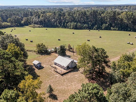 LOG HOME ON 125 ACRES! Nestled on 125-acre of pristine land in Kennard, Texas, this stunning log-cabin home offers a perfect blend of rustic charm and modern comfort. The two-bedroom, two-bathroom retreat featured a durable metal roof, cozy-wood burning fireplace, and inviting front and back porches, ideal for savoring serene country evenings. Surrounded by gorgeous pastureland and meandered by South Fork Cochino Bayou, this property is a haven for running cattle, hay production, recreational hunting, or just simply enjoying a peaceful weekend escape. There is a natural spring with great water flow that would make a great lake-site. Inside, the open floor plan with vaulted ceilings creates an inviting atmosphere, where a spacious living room seamlessly connects to a well-appointed island kitchen. The adjacent laundry room and guest bedroom add convenience, while the expansive primary bedroom boasts beautiful windows showcasing breathtaking views of the surrounding landscape. Don’t miss out – come see this property soon, or it will be gone!