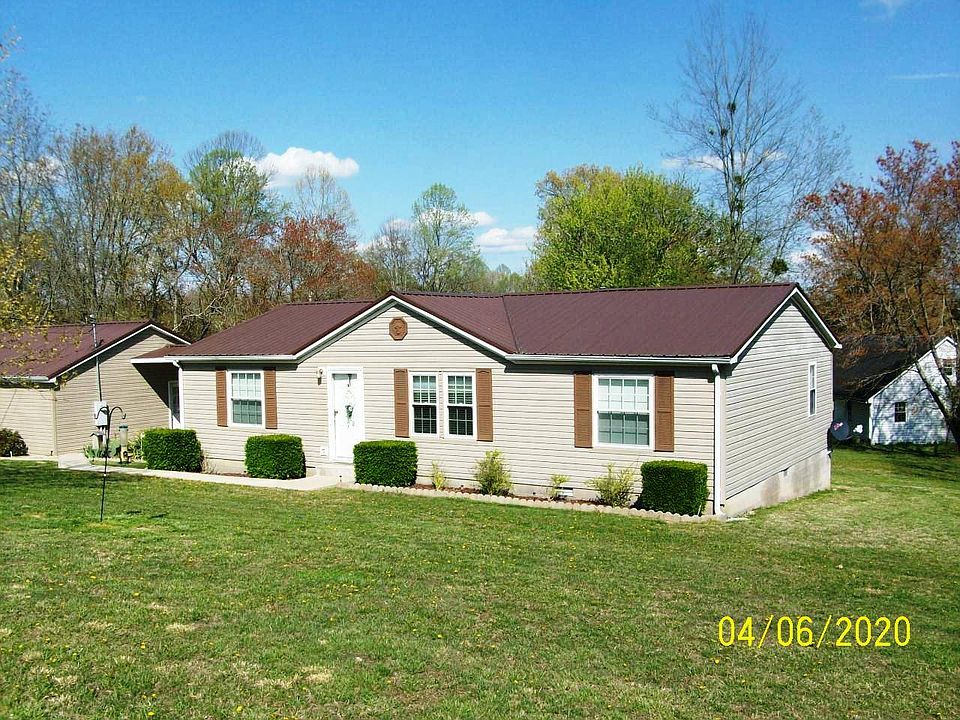 Well maintained manufactured home that is like new inside. 3 bedrooms, 2 bathrooms with 2 bedrooms and 1 baths on one side of home and a large master bedroom and bath on the other side. Large kitchen living room combination room between bedroom areas. Recently installed hardwood floor in living room area. Floors are all in excellent condition. Kitchen with good grade kitchen cabinets and a kitchen bar for extra storage and seating. Refrigerator, dishwasher, stove all goes with home and are in very good condition. Laundry area off kitchen. Nice bonus room added off kitchen with fireplace (propane). Sun porch at side entry area off of garage. Covered area between sun porch and garage. Wood deck off of bonus room for summer cookouts. Exterior in excellent condition with entry wood steps / platform and back deck area in good condition. Two car garage that is insulated with partially finished interior and 220 electrical service. Large, flat back yard is an excellent space for children or a garden area. Home is on a dead end road in a very light traffic area but less than 3 miles from the downtown Russell Springs area. This home is in move-in and great condition. Home is less than 15 miles from the Lake Cumberland State Resort Park and Lake Cumberland State Dock. Would make a great primary home or second home location for the weekends.