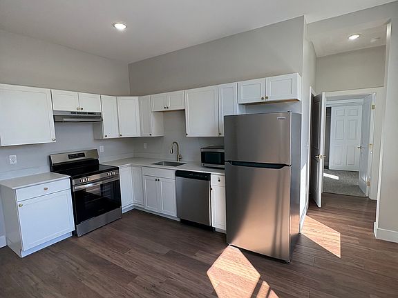 Spacious bedroomLarge kitchenStainless steel appliancesWhite shaker cabinetsAmple storageOff-street parkingQuartz countertops