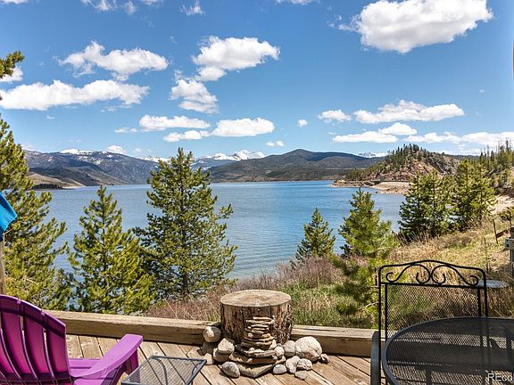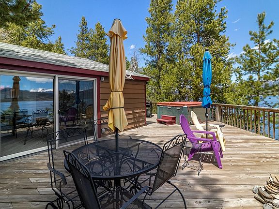 Dream location! Wooded site on the south shore of Lake Granby, the largest of our lakes; the lake is a part of the Arapaho National Recreation Area. From the great deck, enjoy a magnificent view of the Indian Peaks Wilderness Area to the east. No one will ever build on the distant shore and change that view! To the north, several miles beyond the lake, is the western entrance to the Rocky Mountain National Park. Construction of this retreat began in the early 1950's, when people had first choice of locations along the newly created shoreline. When you gaze at the protected mountain views you will see that few sites offer such splendid views and location as Sunset Point, close to a boat launch and small camping area. The home features a large deck, a terrific private, peaceful screened porch and is almost 1,000 square feet: 3 cozy bedrooms plus an office, three ¾ baths. The home and garage are on 4/10 of an acre. R 101921 Amended Final Plat of Lots 19 and 20, Second Amendment of Schilz Subdivision: Parcel A # 120 GCR 6005, Granby $535,000.