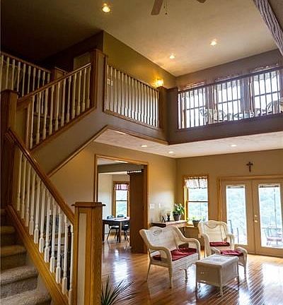 Remarkable view with unbelievable privacy! Over 3000 sq feet of living space with tons to offer. Marble entryway opens to huge two story living room, eat in kitchen with custom bar, first floor master suite currently used as a family room with full bath and laundry. Den/office could be an additional bedroom. Huge second floor master suite with updated bath including jet tub, full shower, laundry, and private deck. Hardwood floors, fresh paint and new carpeting. Apartment attached with living room, sink, full bath, laundry, and two bedrooms. Stone patio overlooks the unparalleled view. Unique property close to Route 422.