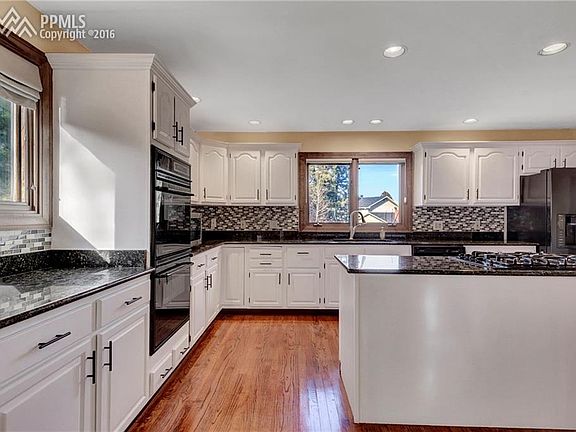 Lovingly maintained home on a quiet cul-de-sac in Broadmoor Ridge. This well-appointed home sits on a flat, over 1/2 acre lot offering beautiful gardens, expanded deck and patios, a gazebo and abundant privacy. The front of the home boasts a circular paver drive and covered front porch. The main level features hardwood floors, a large formal living and dining room, an office with double doors and a family room with built-in bookshelves, a fireplace and walk out to a large deck and patios in the park-like backyard. The kitchen boasts granite counter-tops, a large center island, hardwood floors, a breakfast area and a wet bar. All 4 bedrooms are located on the upper level to include the oversized master suite with a walk-in closet, sitting area, five piece master bath plus a large storage area. There are 2 additional full baths, one to include the laundry area, upstairs as well. There is abundant storage throughout the home. Top all this off with a great location - walking distance to the Country Club of Colorado and convenient access to Downtown!