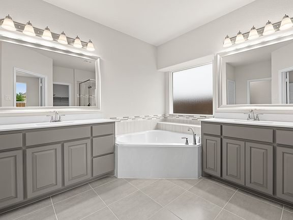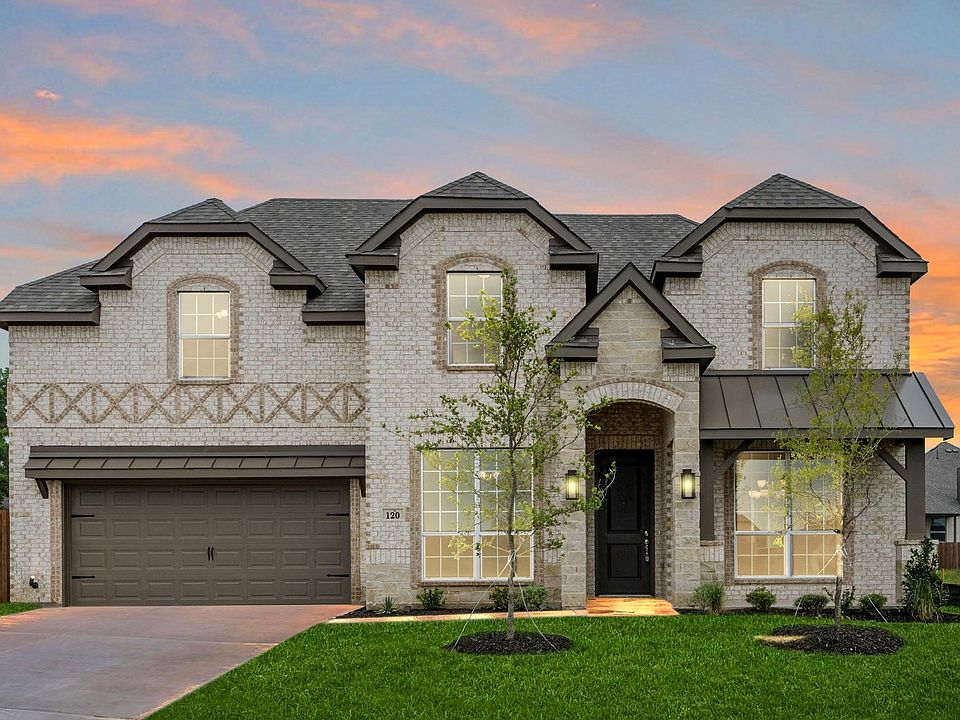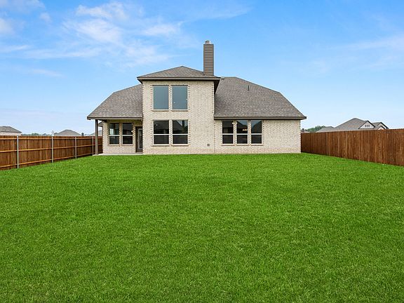 This expansive home offers a traditional floor plan for those seeking classic style and easy daily living. Step in from the covered front porch and into the foyer which welcomes you into the private study. Finished with double doors, this space creates the perfect home office or a quiet area to enjoy hobbies. Across the foyer is the formal dining room filled with natural light, an ideal space for entertaining guests or enjoying everyday family mealtime. This beautiful kitchen has everything you could ever want! Not only is it connected to a butler's pantry and a large walk-in pantry, but it features a large central island with stainless steel appliances, beautiful cabinets, quartz countertops and plenty of storage space. The breakfast nook provides direct access to the rear-covered patio, and has a built-in window seat for extra seating! And if that wasn't enough, the spacious family room features a wall of windows and an inviting wood burning stone corner fireplace, perfect for gathering with friends and family and making memories. Designed for optimal privacy and relaxation, the master suite is tucked away from the family room. Enjoy a spacious room with boxed ceilings and an adjoined master bathroom featuring dual vanities, a large corner garden tub, a separate walk-in shower, a linen closet, and a large walk-in closet. For added convenience, a powder room and full-sized utility room with direct access to the two-car garage complete the lower level. The grand staircase in