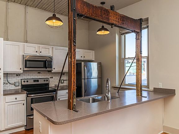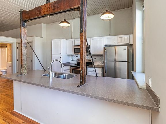 This 1 bed/1 bath 2nd floor loft-style apartment at The Wilson Furniture Company Lofts comes with stainless appliances, hardwood floors, tile backsplash in the kitchen, and tons of charm! You're just steps from Larema Coffee House, the Gig Exchange, and the renowned Vollis Simpson Whirligig Park! Internet, water, and sewer services as well as a dedicated parking space all included in the rental of this apartment. Tenant pays for trash and electric.