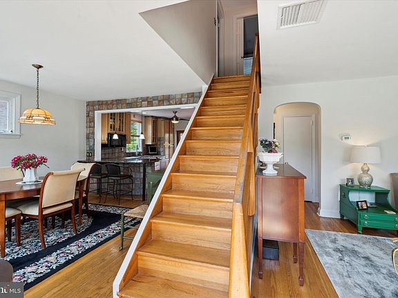 Lovely stone front cape home, 3 beds and 2 baths in a highly desirable Paddock Farms location. Roof and gutters new in 2022. Enter into the open layout, main floor with a spacious and bright living room with gas fireplace and hardwood flooring. Bonus room on the main floor featuring a large den to the right with a loft area. Dining room space which has been opened to the kitchen, with a granite breakfast bar with seating. Kitchen with stainless steel appliances (Refrigerator and oven/cooktop new in 2020), granite and tile counters, gas cooking and a sliding glass door to the oversized deck to entertain. Versatile main level bedroom with ceiling fan. Main floor full bathroom. Deck overlooks the rear yard which has space to play and garden. Central air. Upstairs to the right you will find a large bedroom with ceiling fan, several closets and an extra nook with window which can be used as a walk-in closet. Modern hall bathroom updated in 2012. And the 3rd large bedroom is upstairs. Walk out basement with room for a lower level den with built-ins and storage. Laundry area, mechanicals and storage closet. Attached garage. Windows replaced during seller’s ownership and plantation shutters added in 2020. Close and convenient to highways, schools, parks, shopping, restaurants, transportation, and the airport. Close proximity to the Havertown YMCA, Paddock Park and the Haverford school district schools.