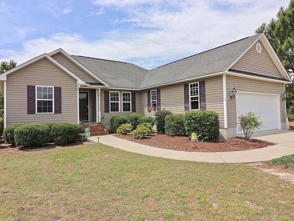 Located in the welcoming neighborhood of Luke's Landing, this 3 bedroom 2 full bath home has Summerville Pine Laminate Plank flooring flowing throughout the home. Enjoy the open floor plan design with living room/formal dining room opening up into the kitchen. Living room boasts a high vaulted ceiling and sliding door access to the screened in porch extending your entertaining area. Kitchen has a pass through window, pantry and breakfast area. Single level Master suite with dual sinks, a shower/tub combo, and a large walk in closet. Fenced in backyard with privacy fencing, extensive landscaping, deck connecting to large patio, 2 car garage with extended driveway and Termite Bond. A wonderful home close to Aberdeen, Pinehurst & shopping. Your new home awaits!