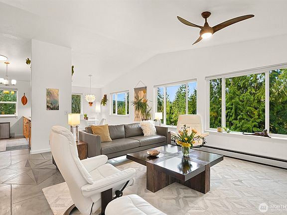 Nestled among the trees, this beautifully maintained home offers a perfect blend of comfort and charm. The inviting open-concept design is enhanced by stunning tile floors that add warmth throughout. Vaulted ceilings grace each of the three main-level bedrooms, creating a spacious and airy feel. The modern kitchen shines with granite countertops, stainless steel appliances, and stylish updates. A daylight basement provides an abundance of space to spread out and make your own. Step outside to the serene courtyard side yard—ideal for entertaining, gardening, or simply unwinding. With a newer roof, cedar siding, and radiant in-floor heating, this home is as functional as it is beautiful.