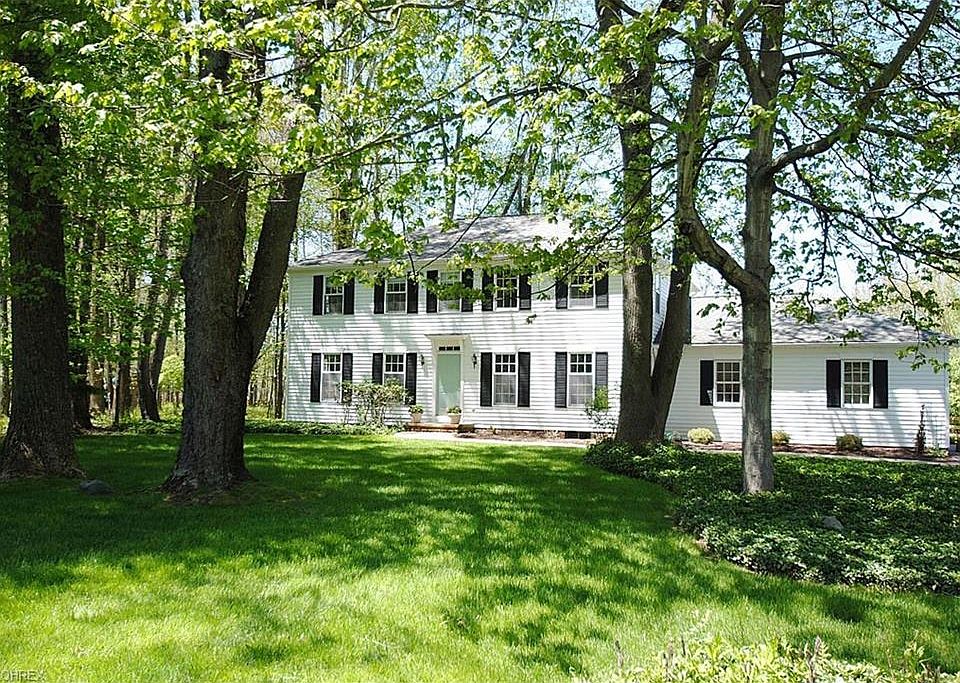 Beautiful colonial in great condition w/ younger mechanicals & roof. The newer kitchen has granite counters, cherry cabinets & a sliding door to the deck & an incredible view that overlooks the Chagrin River. Enjoy 2.3 acres w/ the back yard being limited with a deck, but which has a large side & front yard, sitting on a quiet cul-de-sac. Steps could be installed down the hill for easy access to the river since the lot extends all the way down to it. It is not the home for anyone looking for a large backyard. Beautiful hardwood floors run throughout the entire first floor w/ slate in the foyer. The family room has a great rustic fireplace & large doorway to the living room allowing it to be part of the family room for a large crowd. The Master Bath shower is "handicap friendly" but is also the "newer style" that is more open. The laundry room is off the back hallway & doubles as a mudroom. This is a one owner home with many great improvements & some fresh painting . Priced for the new buyer to update baths as they like or to finish the lower level if desired. Although Moreland Hills, this is in the award winning Chagrin Schools District!