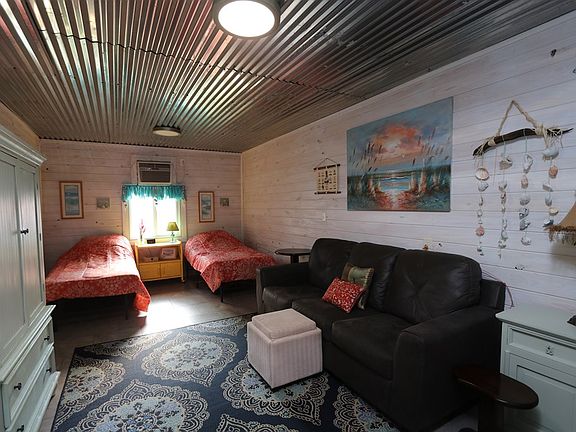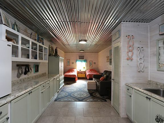 Well thought out family camp! This 1 / 4 acre X flood zone lot located blocks from the Apalachicola River is beyond unique! The main building aka Master Suite is 12x30, lined with tongue/groove walls, tile flooring, living space, 1 / 2 bath, counter/cabinet space & double closets. The full kitchen, bath & laundry are connected to the 12x24 bunk house offering a loft space for add'l guest or storage; all under a 40x50 pole barn granting ample covered entertaining space. The 12x20 bldg offers another private suite with tongue/groove walls & LVT flooring. The outdoor fish cleaning/cook station also features an outdoor shower. All of this plus fruit trees, 10x12 workshop, 12x20 boat shed & fire pit make for the perfect getaway! Did I mention this property is also only a 30 minute drive to area beaches?! *Must be cash purchase.