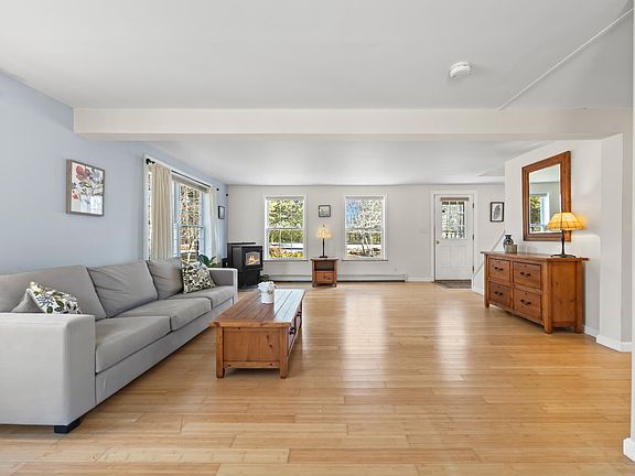 Welcome to 120 Guptil Farm Way, a charming 3-bed, 2-bath Cape on +/- 1.1 acres positioned on a quiet cul-de-sac, just 5 minutes from downtown Ellsworth. The main house features an open first floor with bamboo flooring, an updated full bathroom, and a large deck off the living room that overlooks a level, well-manicured backyard complete with a stone firepit. In colder months, two pellet stoves provide supplemental heating options to the baseboard heating throughout. Two spacious light-filled bedrooms upstairs offer large closets and gleaming hardwood floors. Rounding out the home is the full, walkout unfinished basement offering ample space for storage, a workshop, and workout area.