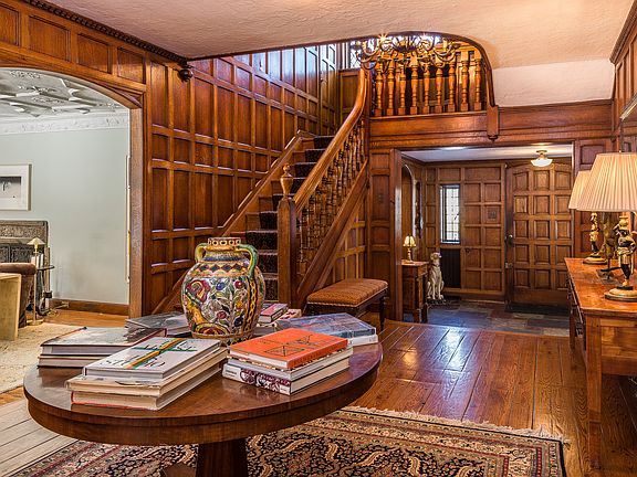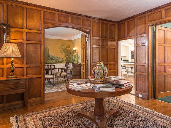 Unparalleled for its striking curb appeal and elegance, this 1925 stone manor house enjoys one of the most coveted locations in the Lawrence Park West estate area. Sited on over an acre of thoughtfully landscaped level property, including a charming guest house with in ground pool, this magnificent home is replete with extraordinary old world details enhanced by stunning quality updates. The expansive center hall introduces a fabulously large living room with fireplace and hand-carved plaster relief work on the ceilings. Adjoining the living room is a glorious sunroom with French doors to a very private terrace. A handsome wood paneled study and banquet sized dining room also flow gracefully off the large center hall. A wonderfully expanded and fully appointed cooks kitchen is the heart of the house and features a playful retro banquette and large marble island. The kitchen leads to a fabulous new family room with an impressive vaulted ceiling which pays homage to the original bones of the house. An uber functional mudroom, laundry room and powder room complete the first floor. Upstairs, beyond a dramatic staircase, the master suite offers generous closets as well as a large dressing room and a new master bath. There is another large en suite bedroom along with 4 more bedrooms and two baths on the second floor. On the third floor, a large and comfortable family room/bedroom is complemented by another large bedroom and bath as well as abundant storage. On the lower level, the large, windowed recreation room with fireplace adjoins another bonus area, perfect for a variety of uses, as well as a half bath. The immensely private and lushly landscaped property is magnificent and accessible from many areas of the house. Best of all, a lovely garden path leads to the private in ground pool and charming guest house. The house has an airy open feel on the first floor with four bedrooms and a bath upstairs. The finished basement offers great versatility. This magnificent estate compound property offers exceptional privacy and is a rare offering in lower Westchester. A short distance from Bronxville village and train, this is the quintessential country home with the quickest of commutes. An extraordinary offering.