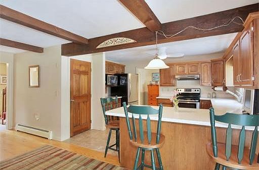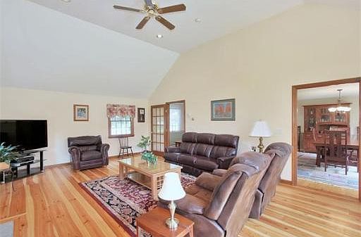 Wow will be your thought as you enter. Includes Amazing "GREEN" Solar saves $$$ Pays money. Large quality built country home , loaded with all the extras, Huge family room with cathedral ceilings, Open and bright, formal dining room with nice moldings, New Wide pine floors, Nice kitchen with exposed beams new appliances solid surface counters, 2 fireplaces, 3 large bedrooms, Nice master suite, finished exercise room in lower level ultra Large deck over looks the 4+ acre lot Perfect and flat, irrigation system, generator hook up. just way to much to list.
