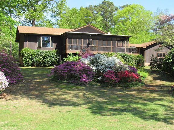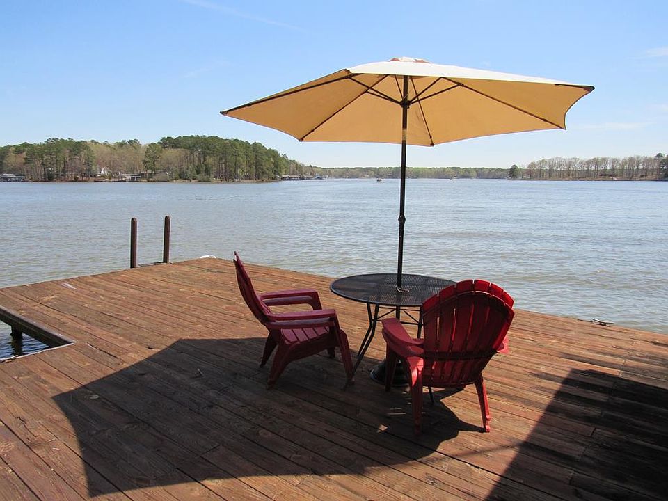Exceptional DOUBLE lot containing almost an acre with 256 ft (HWM) of bulkheaded and ripraped shoreline and fantastic main lake views from the mouth of Lizard Creek! Oversized double boathouse with deep water. This almost level lot is landscaped with mature azaleas and flowering trees. Loved and enjoyed by one family since they built it in 1975, this well-designed rancher is well-suited for seasonal or full-time use. 3 bedrooms, 2 baths, 2 large living areas, kitchen/dining areas and a HUGE screened porch. Add a double attached garage. workshop and paved driveway with parking circle to complete this package. Conveniently located only 2-3 minutes from Food Lion complex, Ace Hardware, drugstore and convenience store. View the pics and call your agent to schedule an appointment to view this gem! PRICE REDUCED!