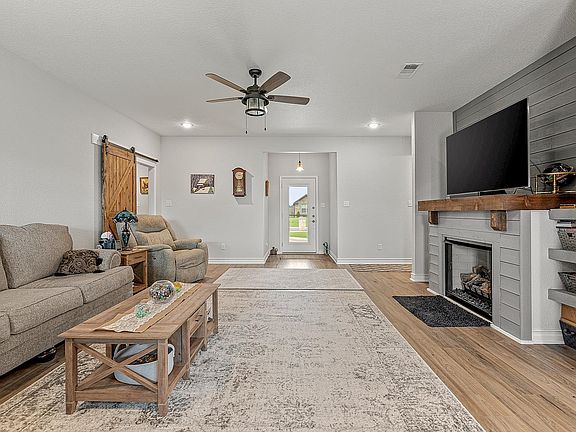 Remarks Don't miss the chance to own a move-in ready house, complete with all appliances and furniture, including Refrigerator, washer/dryer, extra refrigerator and 2 Samsung TV's!! Spacious 3 bedroom 2 bath home featuring an open concept living area, highlighted by a shiplap fireplace, built-ins, barn door, and ample natural light. Open kitchen with eating area, butcher block island, stainless appliances, pantry, and wooden shelving above sink. The master suite is generous sized offering 2 walk-in closets, large linen closet, dual vanities, and over-sized tiled shower. All bedrooms are large and have walk-in closets. A few extras including storm doors, storage closet in garage, mudroom, gutters and extra insulation in attic. Entertain guests under the covered patio. This is a meticulously maintained property, don't miss out on this incredible opportunity!