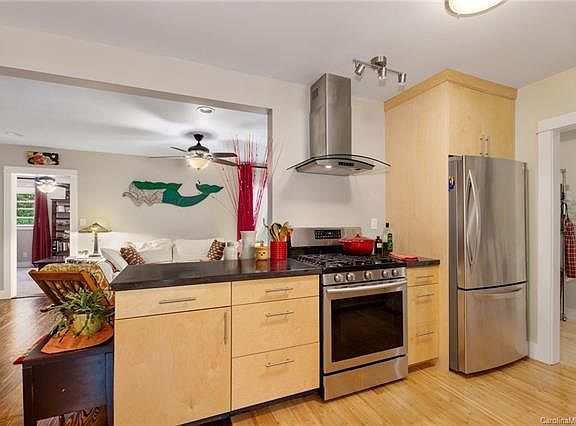 Enjoy a little bit of country within walking distance of Main Street, Weaverville! 12 minutes to downtown Asheville. Completely renovated 2017. Just a block from Lake Louise on an acre of land, bordered by a small creek. * Open floor plan * Built-in custom closets in master * 2 Full Baths, one with shower and one with shower and tub * Living room plus den * Small office room * Kitchen has large stainless fridge, gas range with convection oven * Laundry and pantry off kitchen * Delicious well water, city sewer * Beautiful perennial gardens and organic veggie garden beds * Lovely walking community around Lake Louise and downtown Weaverville with shops, restaurants, library, yoga, and two micro breweries! ABSOLUTELY NO SMOKERS! $1650/month plus utilities: Electric, sewer/garbage, heating and propane stove - approximately $150 per month, plus internet if desired.