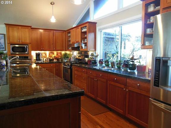 Amazing ocean views are enjoyed from this gracious NW home situated just above Seaside in lovely Sunset Hills. Step into warm & inviting interior with hardwd flrs, vaulted ceilings, cozy fireplace, open floorplan, spacious master suite & views from every room! Gorgeous kitchen features granite counters, custom cherry cabinets, huge eating bar & prep sink. Formal dining room & generous patio completes the perfect home for entertaining!