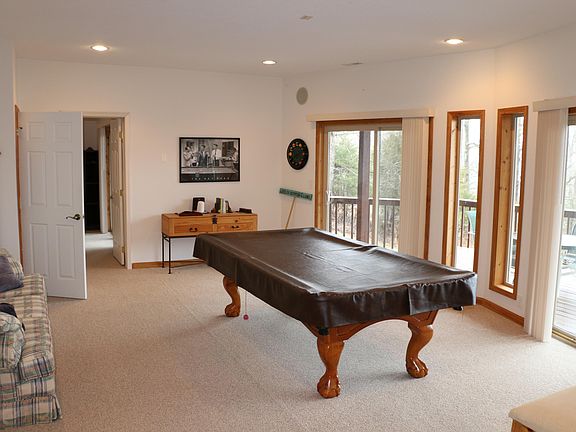 Open and expansive modern lakehouse with stunning lake views on nearly 1 acre wooded lot in coveted Deerfield Resort looks across into Chuck Swan Wildlife Area. Pine cathedral ceilings in great room with 2-story stone fireplace. Main level master suite, hardwood foors, and breezeway connecting kitchen to large 2-car garage with attic storage. Full width decks walk out on both levels, 2 bedrooms and full bath on upper level, and the lower level open family room / living room also has a laundry room, bar area., 1.5 baths and large bedroom. Semi-circle driveway, large open entryway, floor to ceiling windows in great room and loads of natural light are just a few of the extras in this 15 year old home, perfect for your vacation getaway, rental investment or retirement dream home!