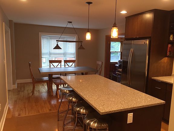 Oh my goodness this home is sweet! A charming entryway with slate flooring opens to the living room with a wood-burning brick fireplace. Hardwood floors extend from the living room into the dining room, & box bay windows in each room fill the rooms with light from the south & the west. A major renovation within the past decade resulted in an open floor plan with a fully updated kitchen, the showcase of the home. Cabinets reach to the ceiling, the counters are Quartz, the farmhouse style single bowl stainless steel sink overlooks the backyard, & appliances are top of the line. A center island anchors the kitchen, providing a space for prep, serving, and gathering. French doors lead from the dining room to the four season knotty pine sun room lined with windows. The vintage vibe adds eclectic charm. A porch door leads to a wraparound deck & another into a hall where you'll find the 1/2 bath & a deep laundry closet with stackable appliances & room for storage. Second floor? More hardwood, which runs up the stairs & through the three bedrooms. The full bath has tile flooring & updated fixtures. Deep tub & updated tile surround in the shower area. One car garage, full basement for storage. Hop on the bus or walk to nearby stores & restaurants. South End location with easy access to city parks, schools, bike paths, & employers. Come home to Home Avenue!