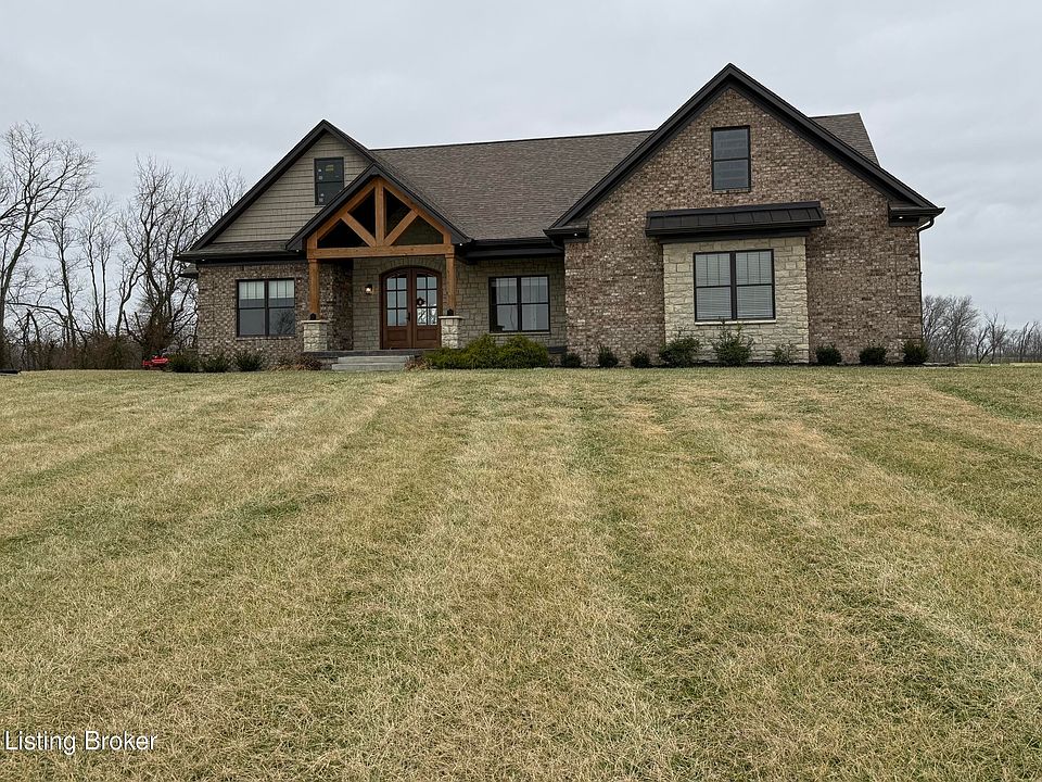 Quality construction with this 3457' sq feet Craftsman style treasure. Located just outside Bloomfield and on 12.40 acres of privacy this home offers 3 bedrooms, 2.5 baths, 2 car attached garage, split/open floorplan with vaulted ceilings, rock fireplace, stunning granite countertops and lots of custom cabinets. Breathtaking hardwood flooring throughout this home, large primary suite with huge walk-in closet, double vanity, tiled shower, marble tub for relaxing and make up area to boot. Large laundry area with sink and vanity as well. Upstairs offers an oversized bonus room coming in at almost 1200' additional sq feet. Covered front and back porches, 2-200 amp services at the house one for the home the other for the additional 40' x 80' 3 bay detached building with 12' x 12' overhead doors. 1350'sq feet of this building is heated and cooled with a mini kitchen setting and bar area along with a half bath having its own septic system. Very rare blacktop private road for access off Hwy#62 to the property. Less than 45 minutes to Louisville and Lexington and only 20 minutes to Bardstown! Acreage backs up to existing farmland and our 12.40 acres also offers a recently constructed pond. Pride of ownership and quality construction make this listing stick out above the rest. Come see what this outstanding property can do for you!!